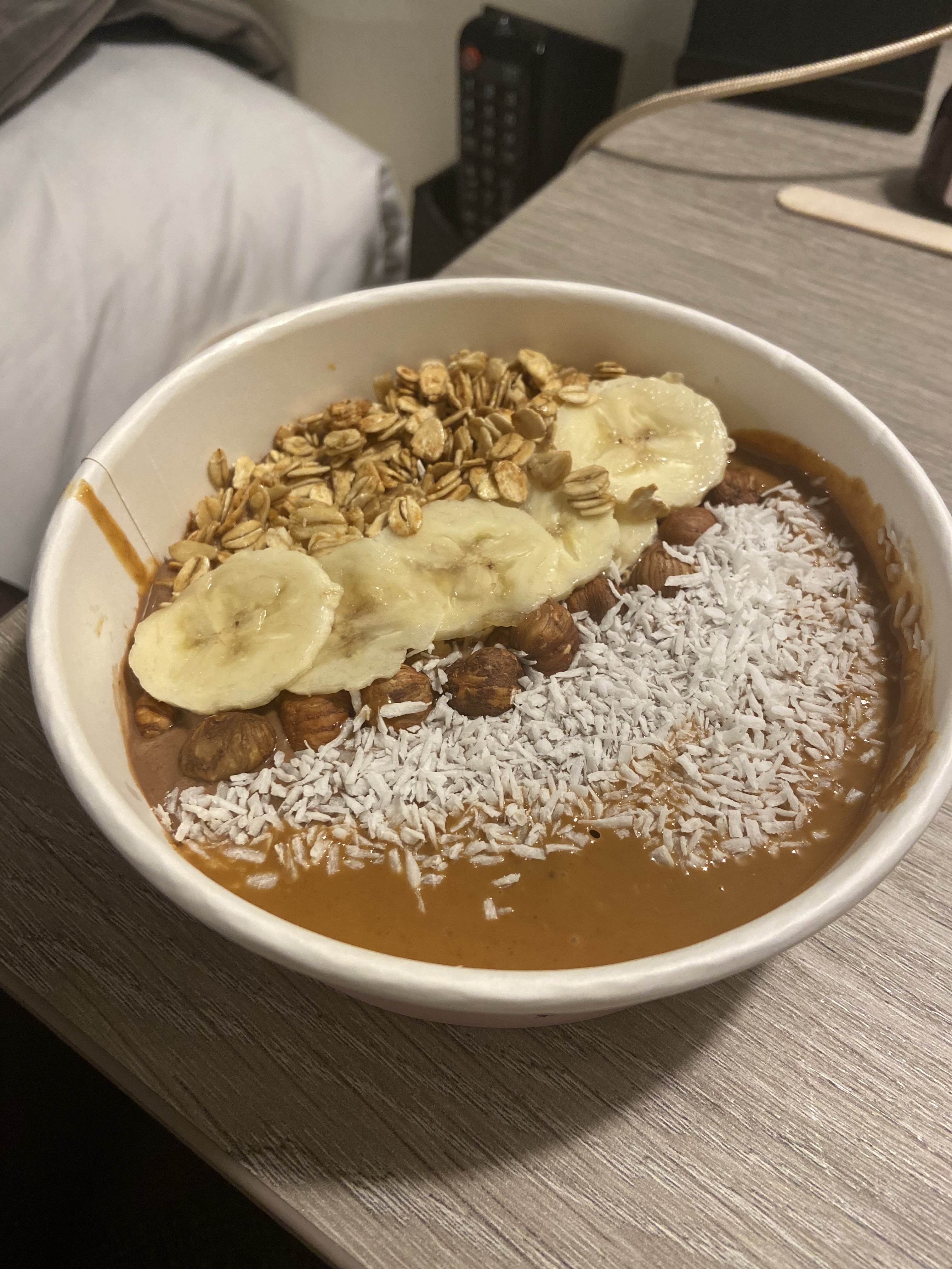 Posté le 15/08/2023 à 07:13"Commande d’un FROZEN açaí bowl (donc sensé être congelé/glacé au minimum). Réception d’un jus dans une boîte avec des épluchures de noix de coco et deux bouts de banane qui se battent en duel. Aucun service client de la part du restaurant."