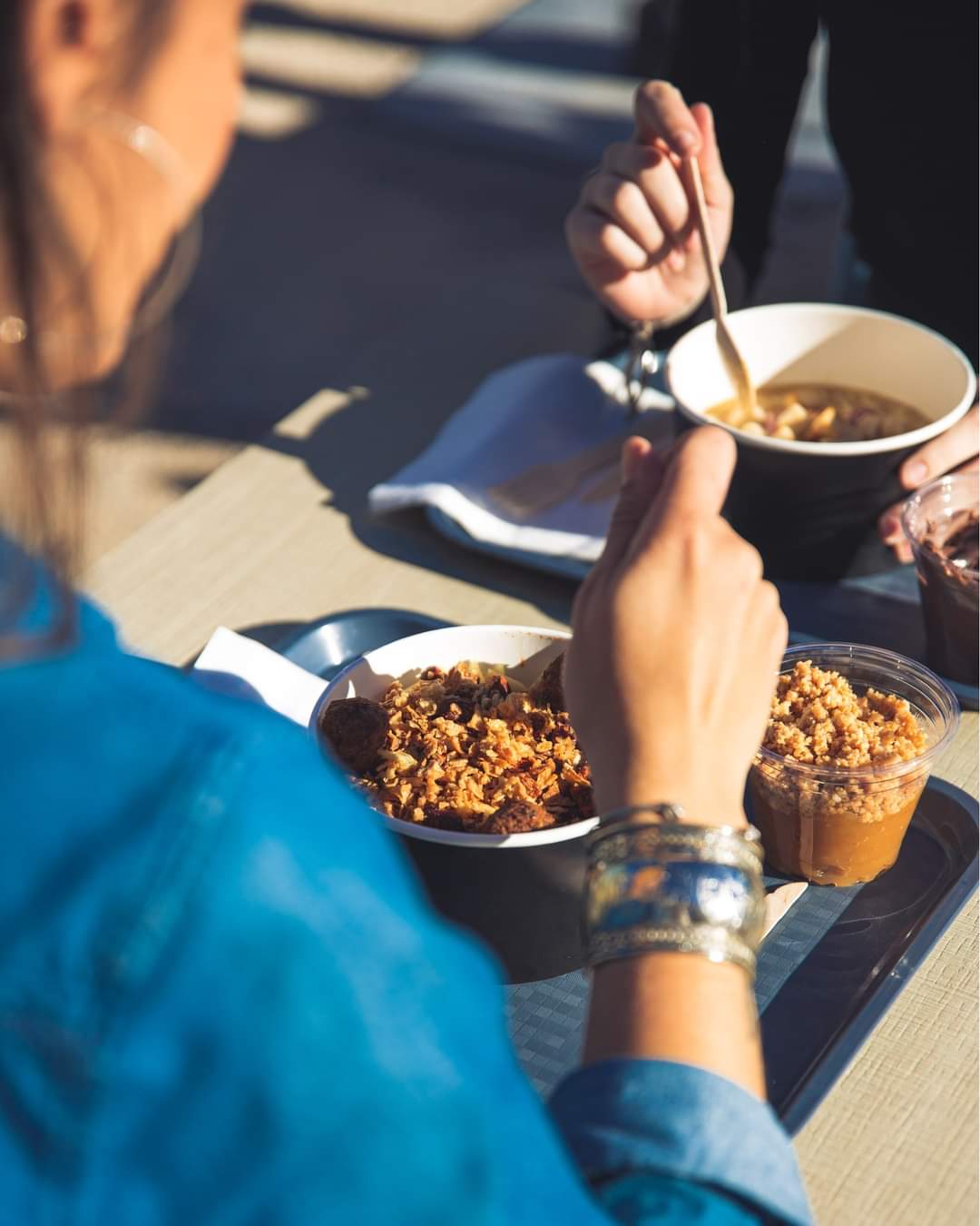"Excellent pour un repas frais équilibré et copieux sur le pouce ! La sauce a l’échalote est un délice et le fait de pouvoir composer sa salade est une super idée.Pouvoir se poser en terrace est aussi un gros plus. Enfin bravo pour l’effort vers le zéro déchet!"