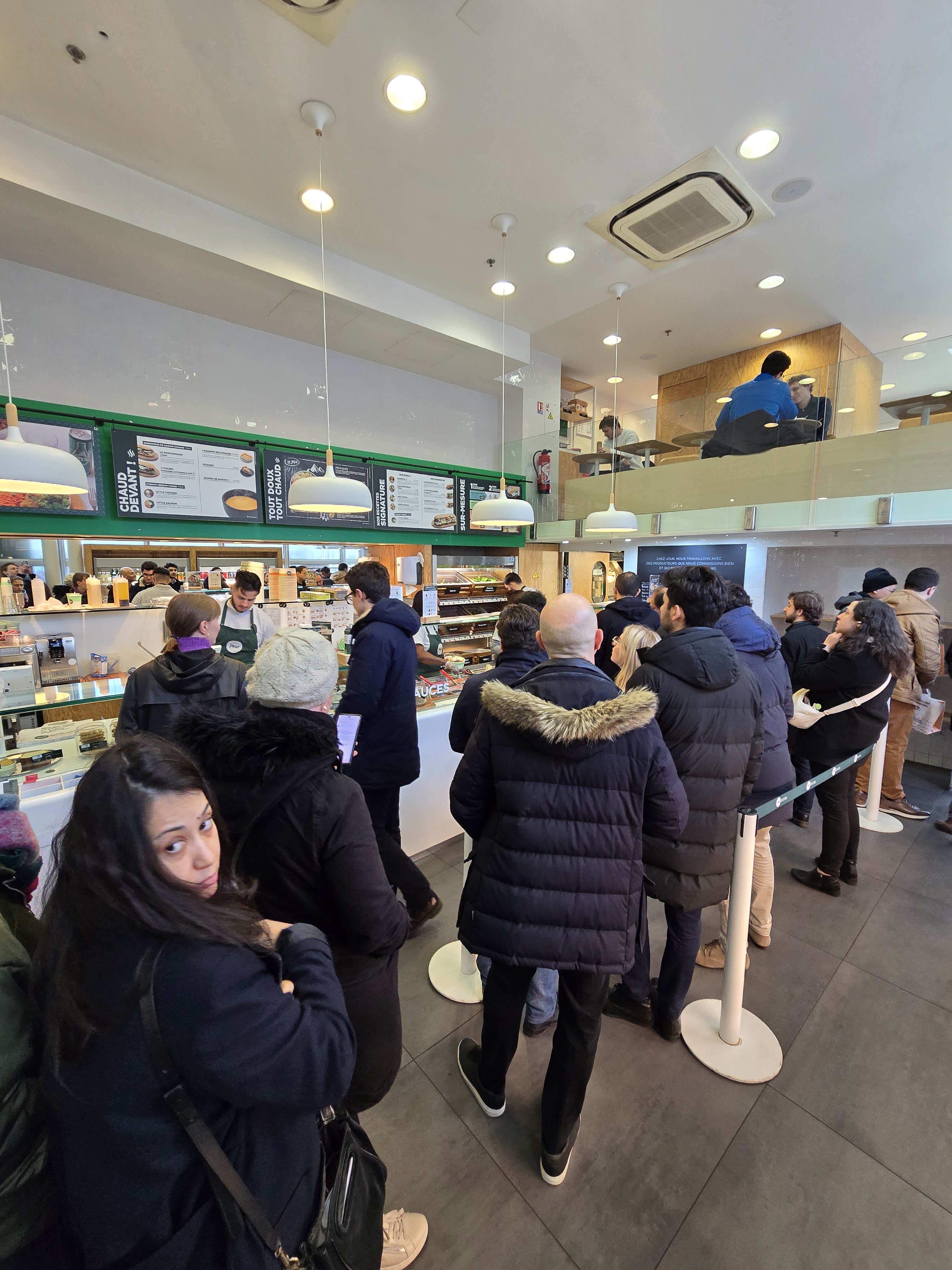 J'y mange régulièrement le midi, les produits sont bons et variés, prix corrects pour la défense. Le service est plus ou moins rapide et sympathique selon sur qui on tombe. Mieux vaut commander via l'appli et récupérer en click and collect pour ne pas attendre.