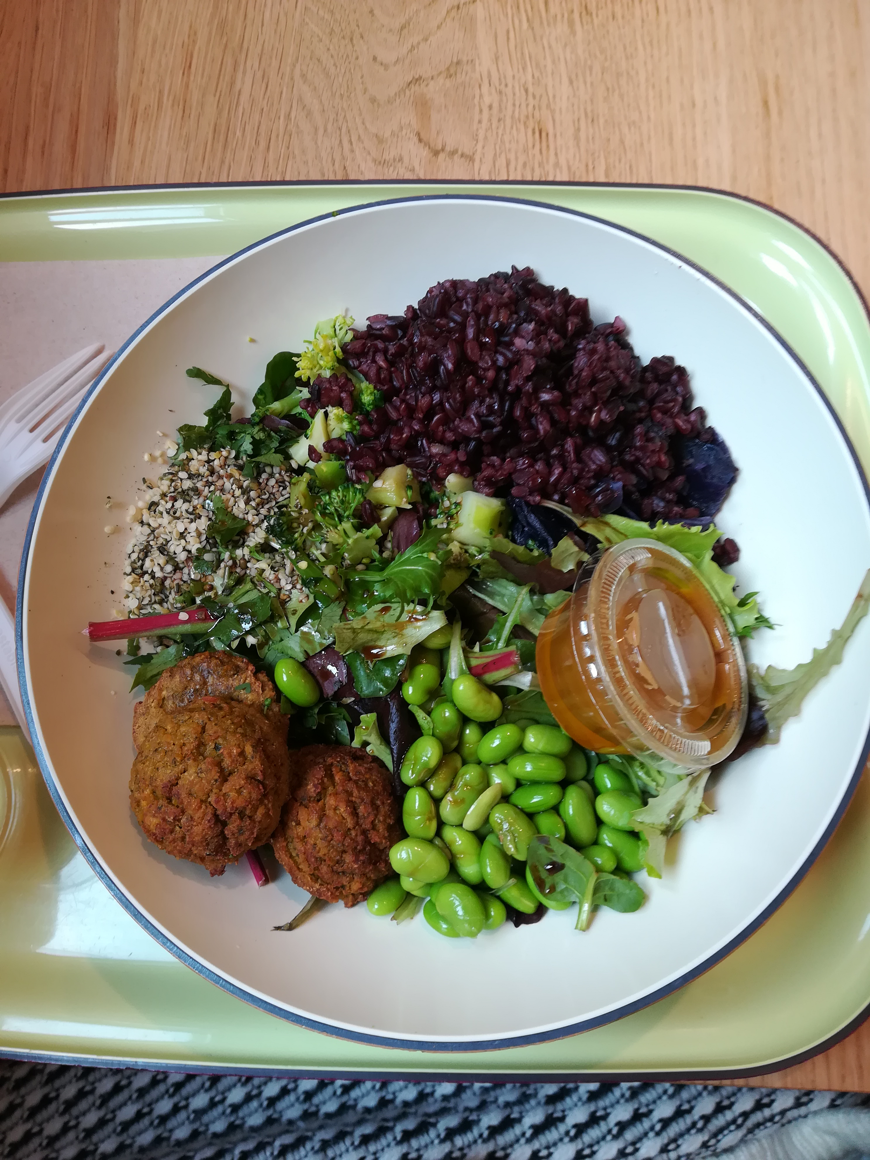 Pour le prix que c'est, vous avez des portions minuscules. Entre une salade bar locale et jour, c'est le jour et la nuit ! Qualité des ingrédients meh, sans plus. Ni bons ni mauvais. Les falafels datent d'au moins 1 semaine, sans goûts et secs. Même le chien n'était pas convaincu...
