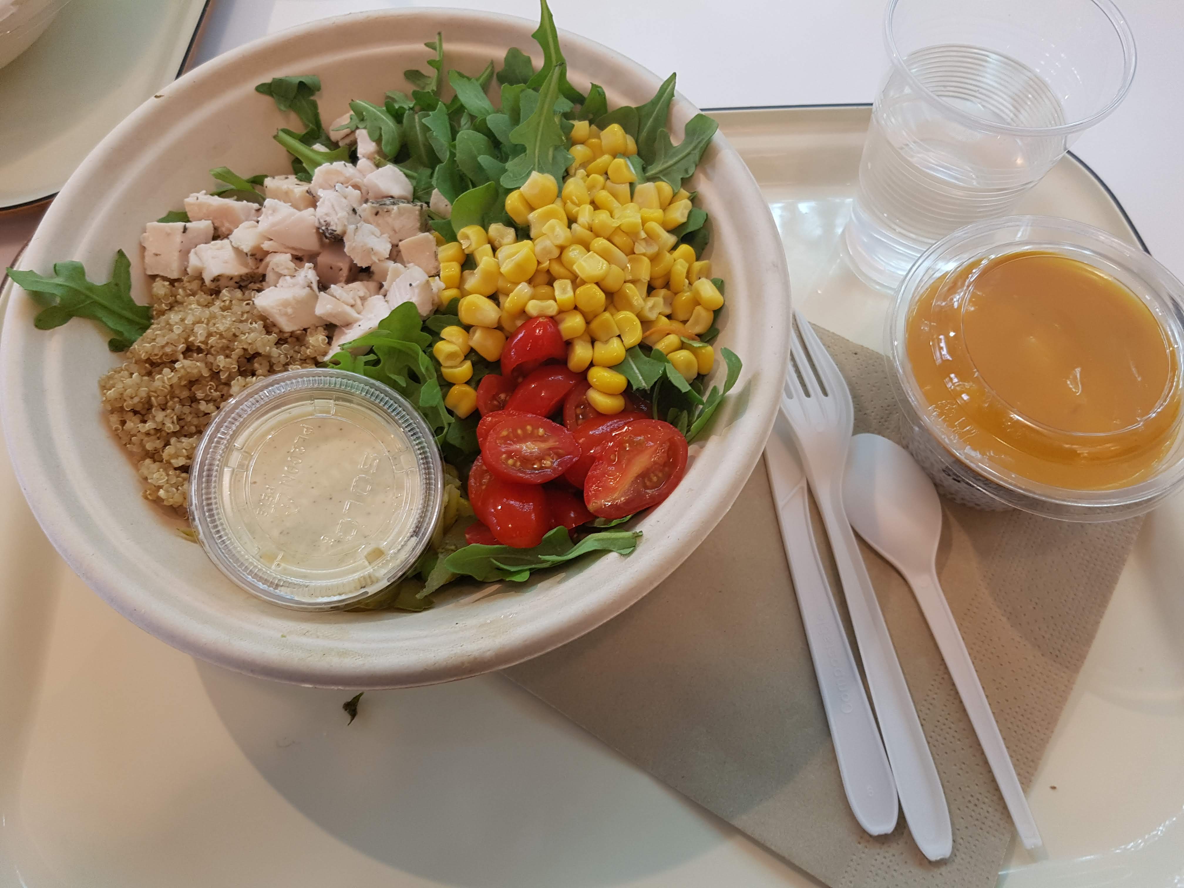 Repas pris sur place. Un peu de queue mais les équipes sont rapides pour servir. Salades servies en quantité avec des produits frais. Formule pratique soit salade sur mesure soit des associations de produits sont proposées. Les salades sont faites au moment de la commande.