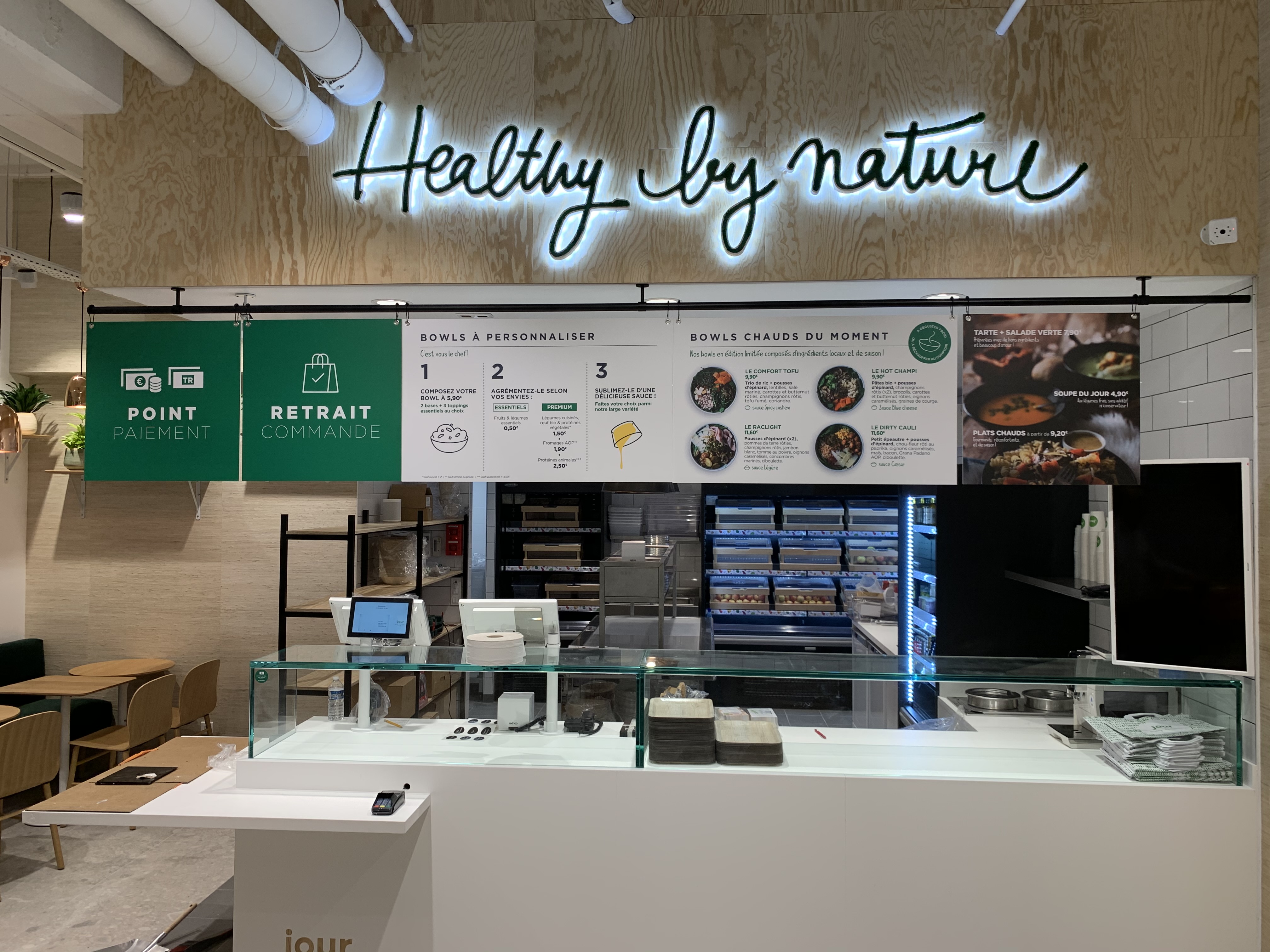 Posté le 18/01/2020 à 14:47"Healthy and Tasty Jolie petit restaurant qui combine produit saint et bio fait maison devant vous. Commande fait sur des outils de dernière technologie. Personnel accueillant et chaleureux. Un concept innovant dans l’aire du temps écolo. Petit bémol sur le confort et l’agencement des sièges. Petite Salade au choix ou sur mesure(verte/pattes/riz/Quinoa) Je recommande"
