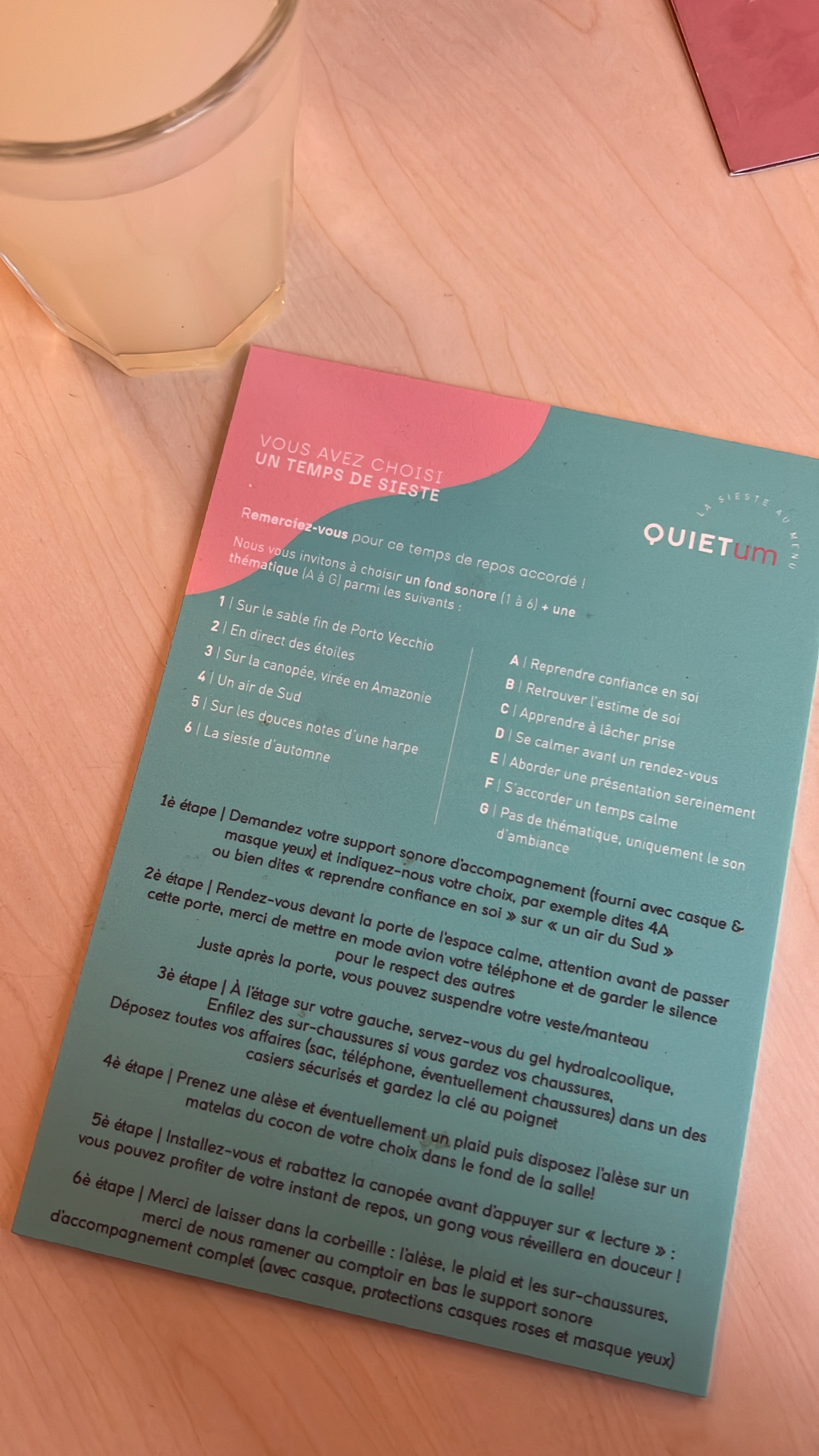 Merci Nawel pour votre appréciation au plaisir de vous accueillir dans notre restaurant Quietum et de vous faire découvrir l'espace sieste et fauteuil massant !