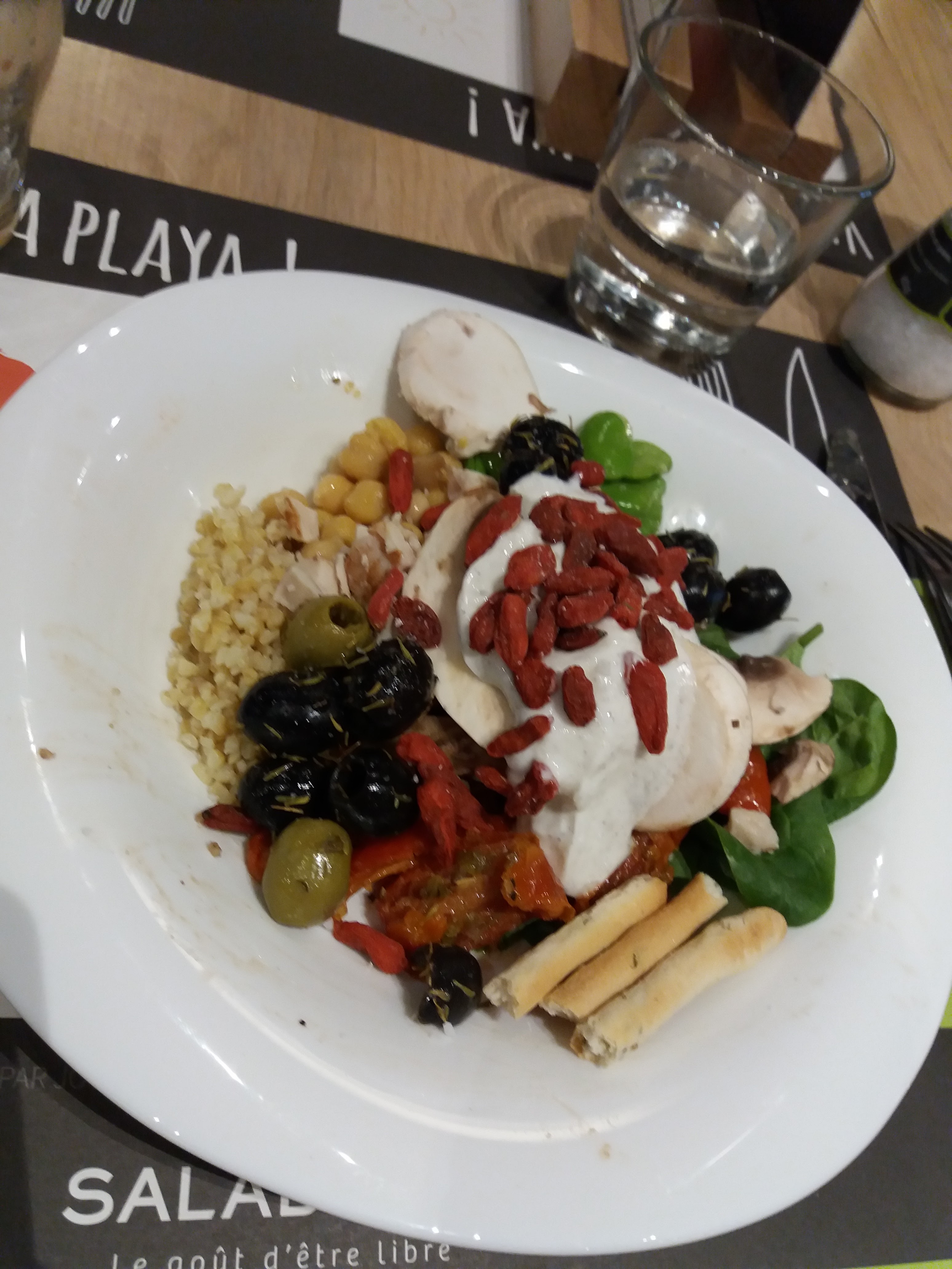 Posté le 06/07/2024 à 15:56"J'aime bien le concept. Les ingrédients pour les salades sont variés et bons. Petits bémol : salle bruyante, et en arrivant dans les premiers, le coin dessert était sale. Les verres ne sont pas très propres non plus. Mais nous aimons y aller pour les salades"