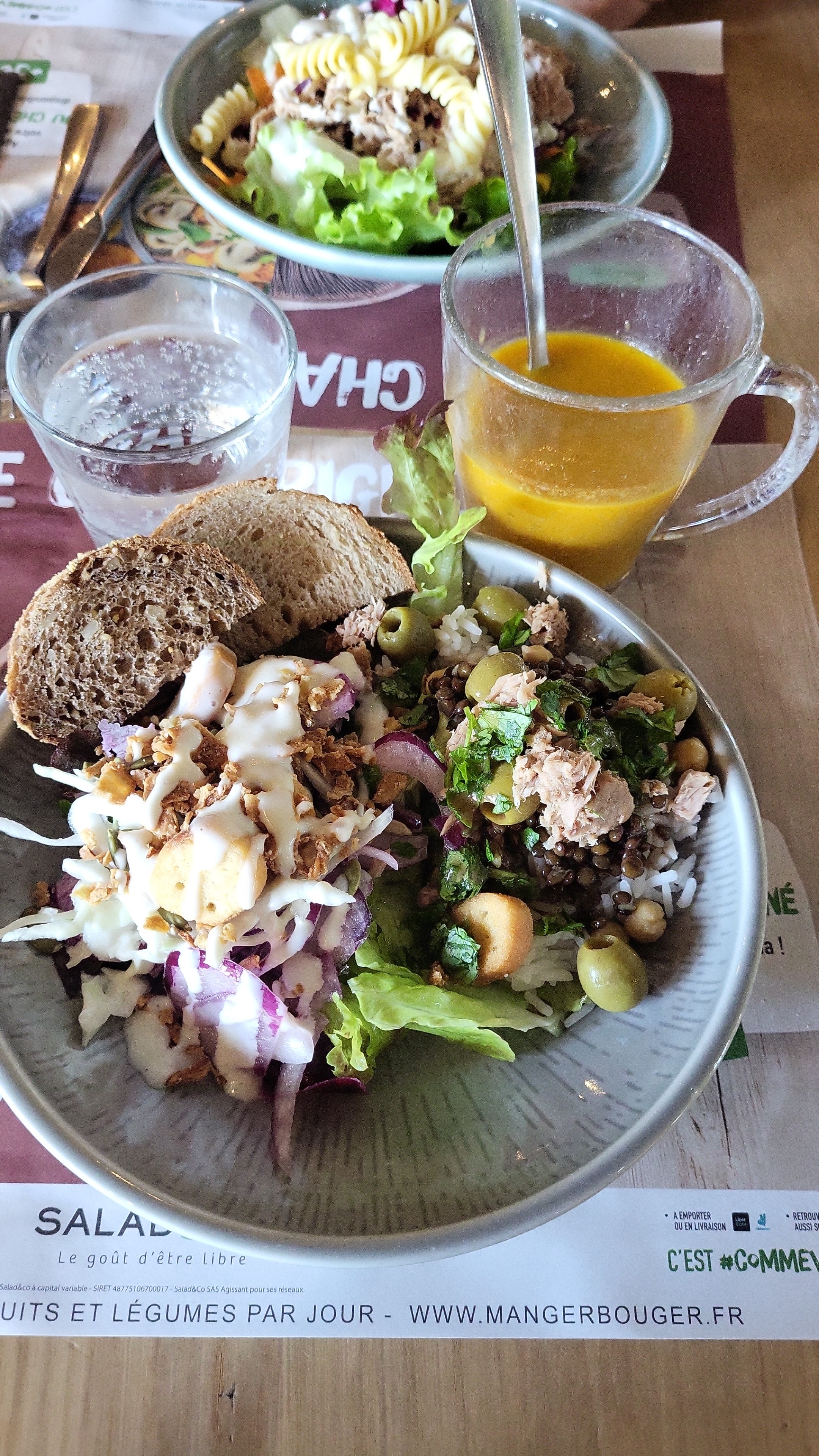Posté le 23/01/2025 à 16:00"Salad&go Entraînée par mes collègues, j'ai dejeuné ce midi avec la formule Salades à 15€50. Franchement, je ne m'attendais à rien mais je suis quand même déçue. Le concept pourrait être intéressant mais... Les plats ne sont pas appétissants, les pâtes sont trop cuites et ce qui fait office de poulet est dans un bac avec dans le fond un liquide gluant. Les produits manquent en général de fraîcheur. La cebette était grossièrement découpée, quel dommage. Côté dessert, je regrette le manque de choix en fruits ( seuls quelques kiwis ( tout mou) se battaient dans leur bac ) il n'y avait plus de bananes et les pommes ressemblaient à des pruneaux ridés. Le buffet n'est pas très hygiénique puisque chacun postillonne dans les bacs et se sert du même ustensile pour se servir. Je trouve d'ailleurs les pinces peu pratique dont certaines déassorties ( pinces en plastique, j'ai cru jouer à la dînette) Certains bacs étaient quasi vides. D'ailleurs les bacs sont petits. La boisson délivrée est variée mais l'eau gazeuse citron était en panne. Les couverts manquent également de vigilance en terme de propreté. Je n'ai pas goûté la soupe mais apparemment elle était bonne. Le pain un peu sec mais j'ai connu pire. Bref, je trouve que le concept pourrait être amélioré notamment en proposant plusieurs viandes et de la charcuterie, mais aussi une meilleure qualité et davantage de diversité de pâtes. Le côté positif a été l'accueil et les vinaigrettes. En l'état actuel, je ne recommande pas et ne reviendrait pas surtout vu les prix !"