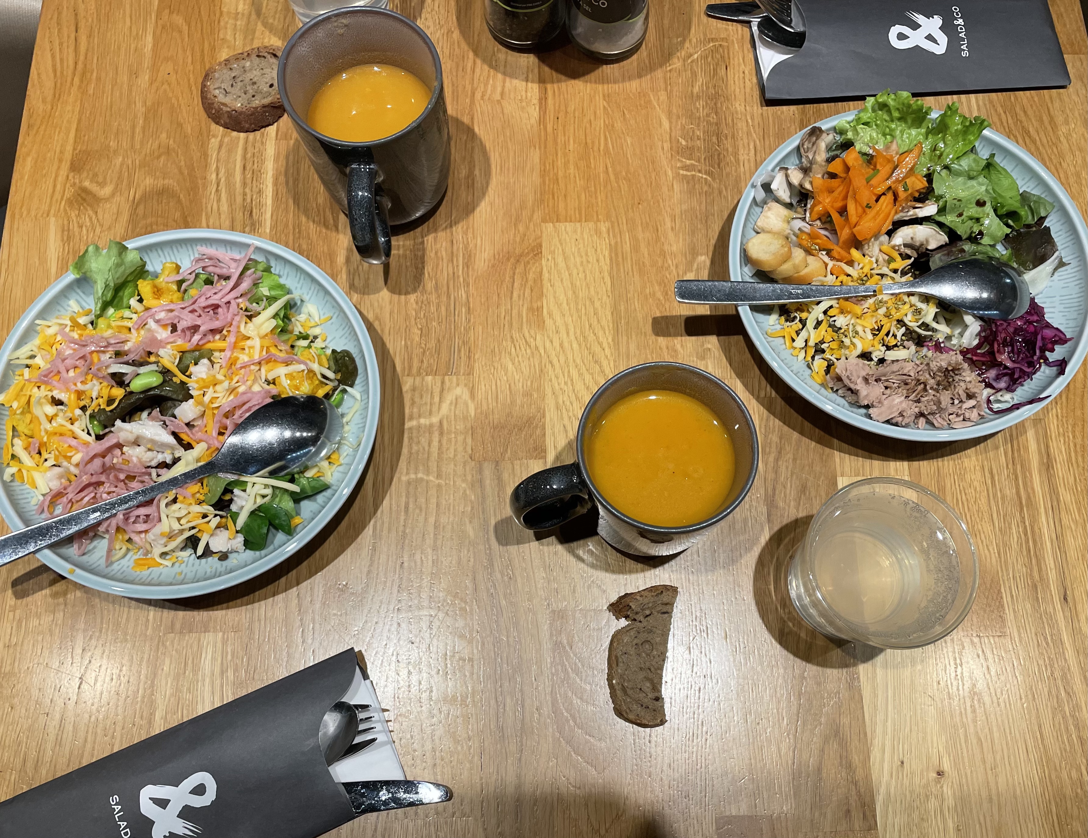 Posté le 21/11/2023 à 21:11"Découverte ce midi du restaurant Salad&Co situé rives d'Arcins. J'ai pris la formule à 14€90 comprenant à volonté 2 soupes maison ( carottes/panais et butternut aujourd'hui ) que j'ai vraiment bien aimé, des salades en self service et un buffet de desserts. Concernant le buffet salades : des ingrédients frais et parfois originaux mais il m'a manqué 3 basiques à savoir les tomates, le fromage style emmental et les oeufs. Le buffet dessert quant à lui est constitué de glaces à l'italienne, de yaourts style muesli, de 2 sortes de fruits et gâteaux. Globalement du choix et des produits qui m'ont semblé de qualité."